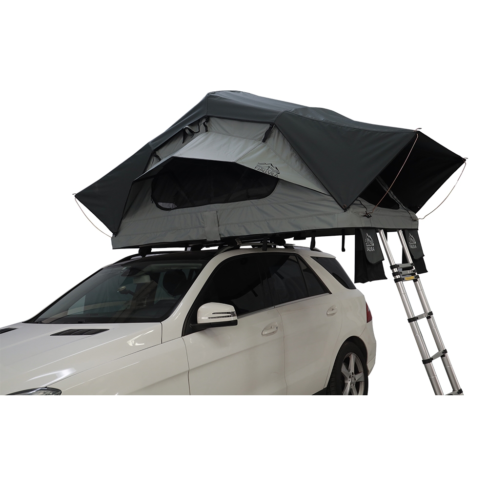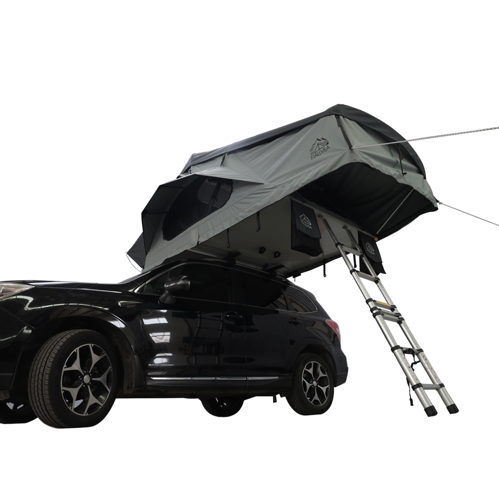 A soft-cover rooftop tent is a rooftop tent with a soft protective cover instead of a hard shell. This tent is mounted on the roof of a car and unfolded to create a sleeping space.
