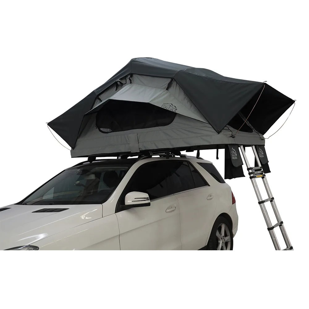The hardshell roof tent is made of 320g/m² polycotton Rip-Stop with an anti-UV 50+ blackout coating, which both protects against harmful sun rays and creates a dark sleeping environment. The water column of >5000mm ensures that your tent can withstand heavy rain and other adverse weather conditions, keeping you dry and comfortable no matter the weather.